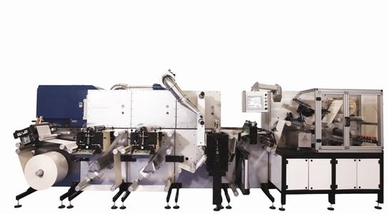 CF380 is a modern and compact construction used for post digital printing refinement of labels. The main advantage of this structure is its clever design which combine many functions in compact frame of machine.